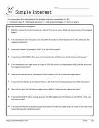 › simple-interest-worksheetsSimple Interest Worksheets With Answers - ThoughtCo Aug 11, 2019 · Calculating simple interest is an essential skill for anyone who maintains a bank account, carries a credit card balance, or applies for a loan. The free printable worksheets in this lesson will improve your homeschool math lessons and help your students become better at calculations.