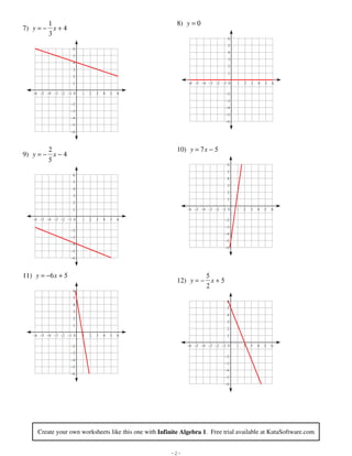 Finding Slope and Y-Intercept Worksheet Kuta The slope and y-intercept worksheet contain a multitude of activities and examples to teach students how to apply slope and intercept in real-world scenarios. Students can easily learn how to calculate the rise and run to determine the slope of a line by completing the several problems on this worksheet. This worksheet provides self-explanatory ...